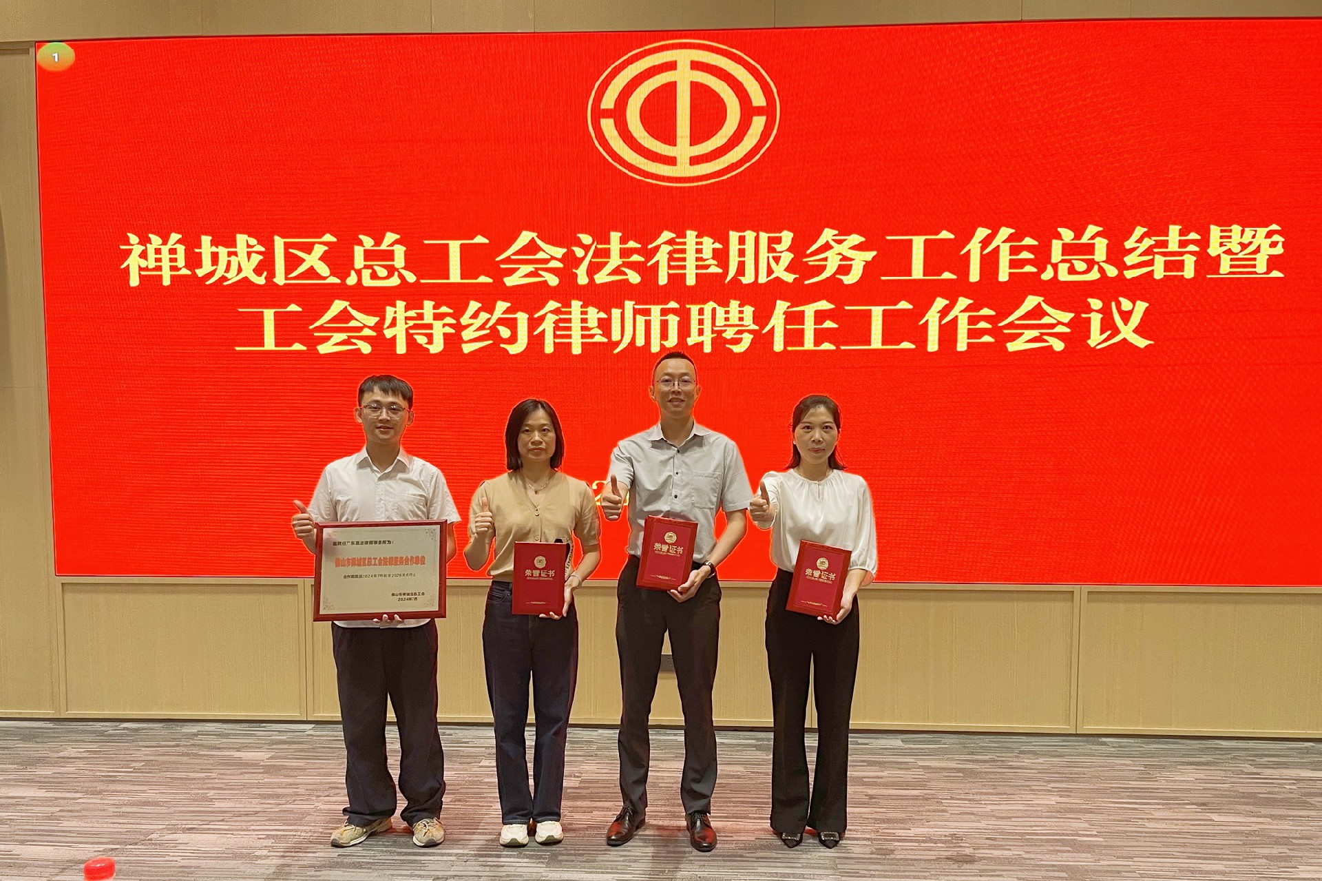 佛山市禅城区总工会聘任新一批工会法律服务合作单位和工会特约律师,并向他们颁发聘书。作为新一期工会法律服务合作单位,我们将提供更加专业、高效的法律服务。